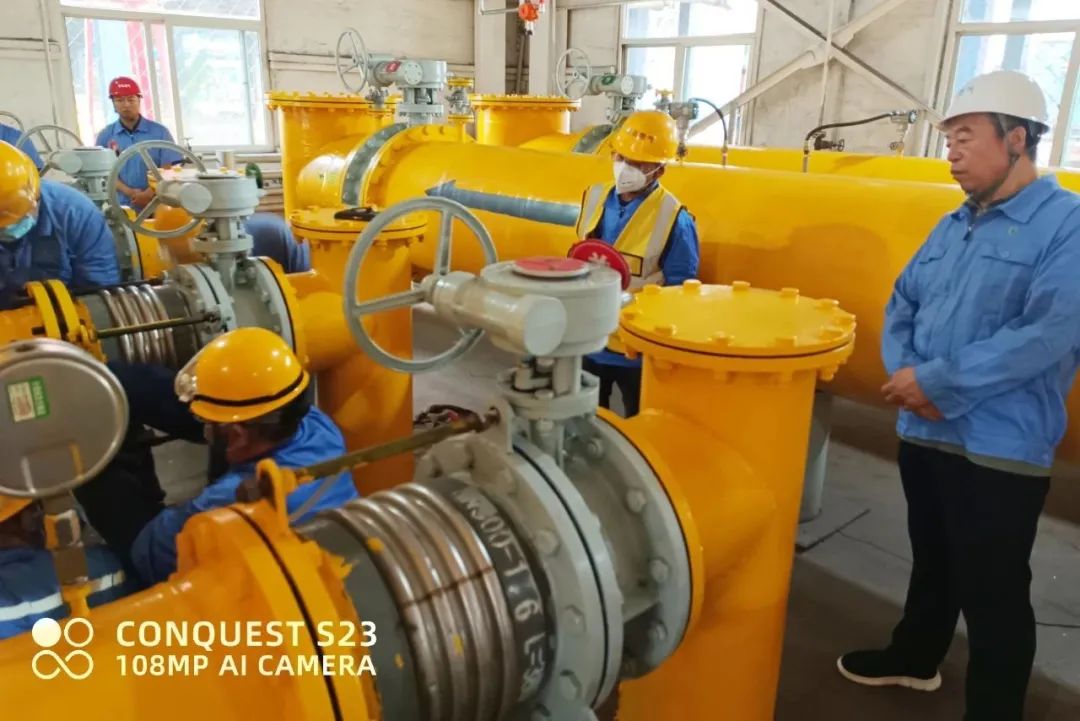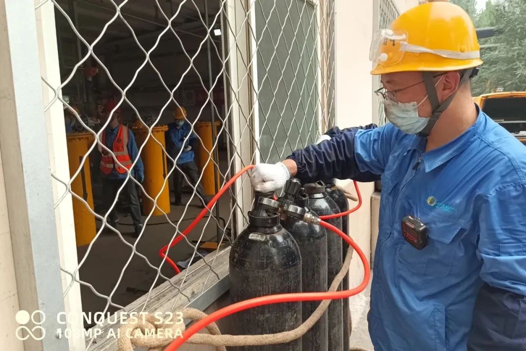 此次演练模拟兴安1#调压站在日常巡检过程中,发现2#、7#调压器运行异常,经排查确认,系调压器内部滑动部件卡死,需立即启动调压器应急处置方案开展现场维保。演练中,作业人员需同步完成对2#、7#两路调压器的插盲板、氮气置换、气体化验、维修保养、氮气调压、置换、抽盲板、煤气置换等15个关键环节,对团队协作和实操能力是一次高强度的考验。