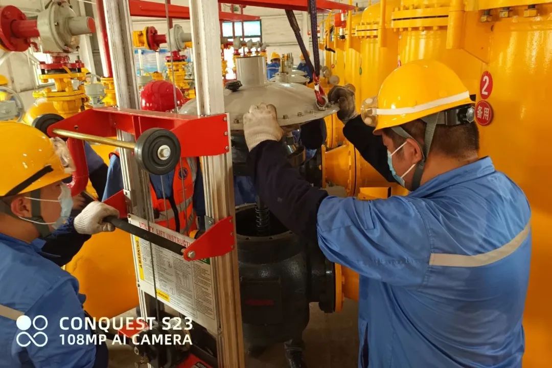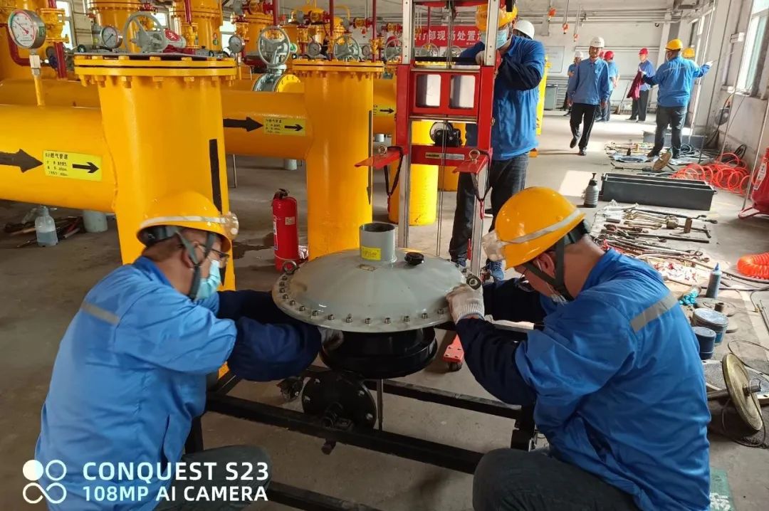 整个演练过程,各参演人员严格遵循演练计划和维保流程,紧密配合、协同作战,各操作环节环环相扣、有序衔接,充分展现了规范的操作标准和严谨的流程控制。经过1小时30分钟的规范作业,两组调压器同步完成维保,经检验无漏气现象,作业合格,演练圆满落幕。